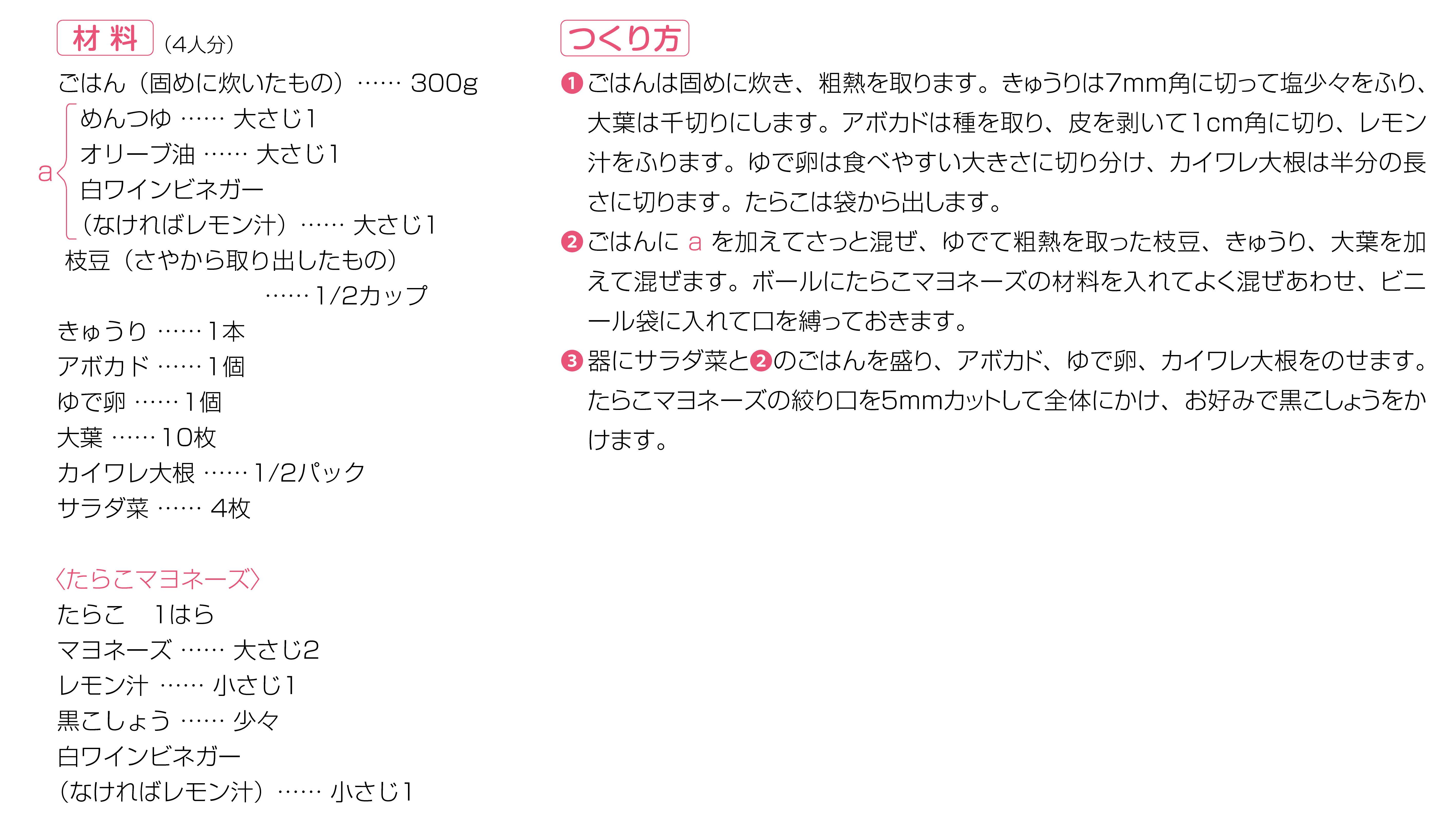 ◎食欲が低下しがちな夏。こってりしたものを避けたい人におすすめなのがライスサラダです。具はお好みで、レモンの香りでさっぱりと食べられます。